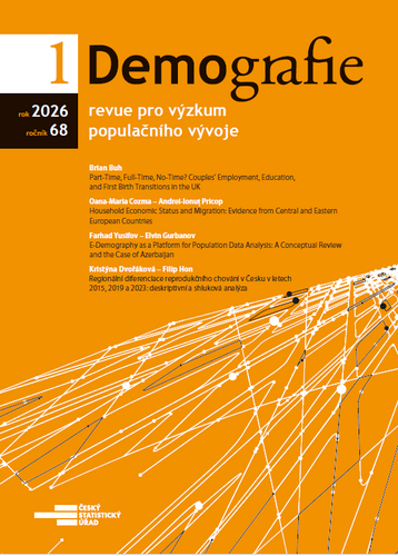 Vyšlo první číslo letošního roku odborného časopisu Demografie. Hlavními články jsou Part-Time, Full-Time, No-Time? Couples’ Employment, Education, and First Birth Transitions in the UK (Brian Buh) a Household Economic Status and Migration: Evidence from Central and Eastern European Countries (Oana-Maria Cozma a Andrei-Ionuț Pricop). Publikovány byly i dva přehledové články: E-Demography as a Platform for Population Data Analysis: A Conceptual Review and the Case of Azerbaijan (Farhad Yusifov a Elvin Gurbanov) a Regionální diferenciace reprodukčního chování v Česku v letech 2015, 2019 a 2023: deskriptivní a shluková analýza (Kristýna Dvořáková a Filip Hon). Celé číslo časopisu Demografie je ve formátu pdf zdarma ke stažení na webových stránkách ČSÚ.